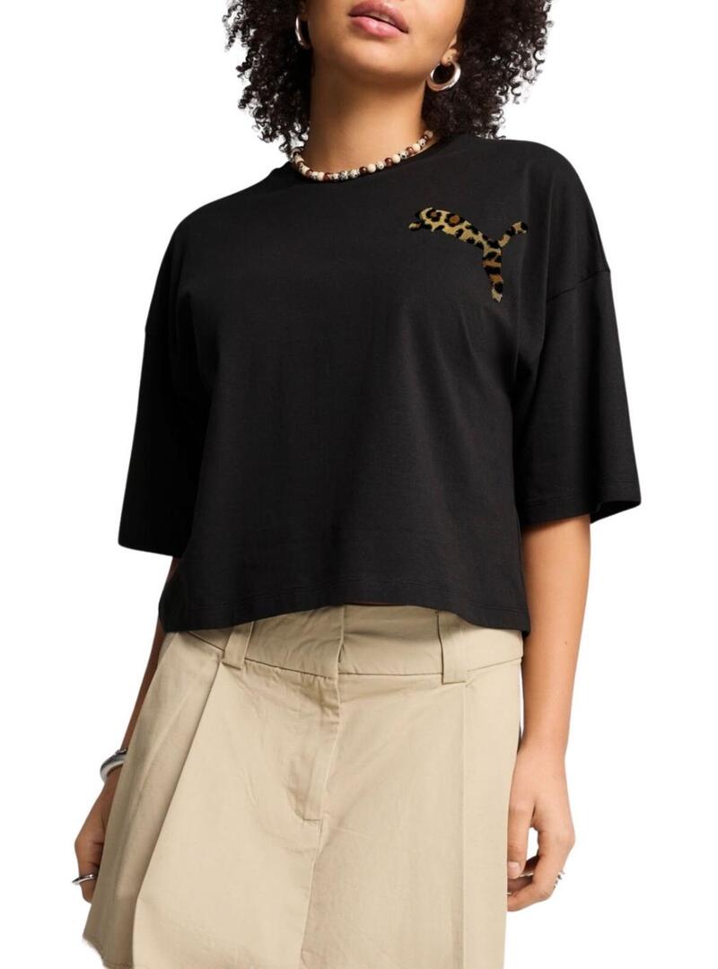M170729 jwojx3bl Maglietta Puma Leo Luxe nera per donna.