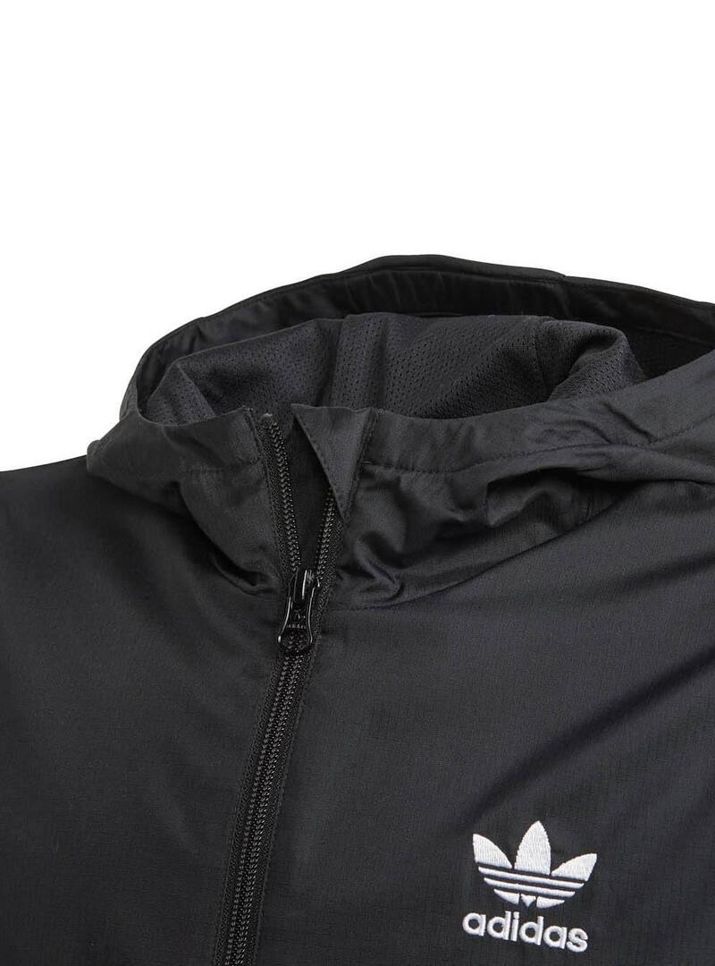 Windbreaker Adidas. Modello Lock Up. Colore nero. Dettagli distintivi del marchio in contrasto. Chiusura frontale con zip. Cappuccio fisso. Collo alto. Tasche laterali. Taglio classico.