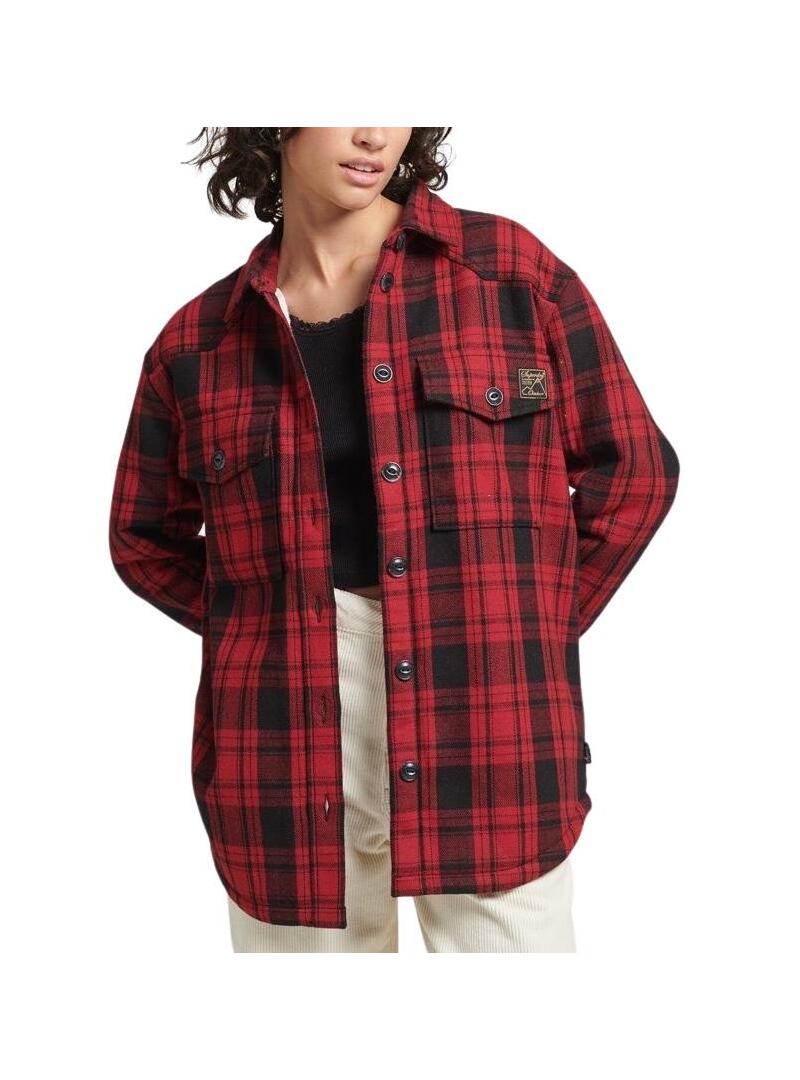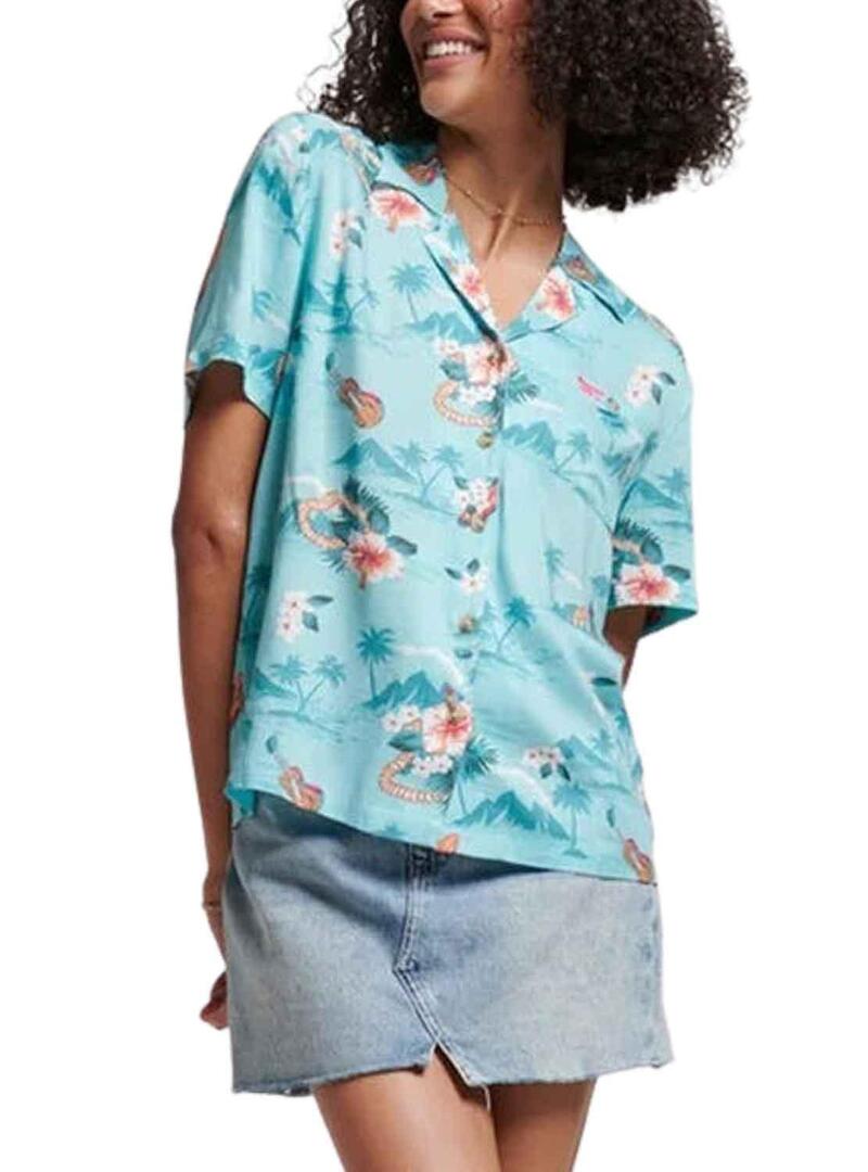 Top Superdry. Modello Quincy. Colore bianco. Stampa a pois. Formato corto. Manica corta Chiusura frontale con bottoni. Retro con nido d'ape. Dettaglio volant. Il modello indossa la taglia S.