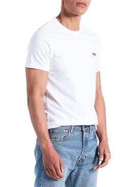 T-Shirt Levis. Modello patch Colore bianco Girocollo Manica corta Logo ricamato sul petto. Regular fit. La modella indossa la taglia M.