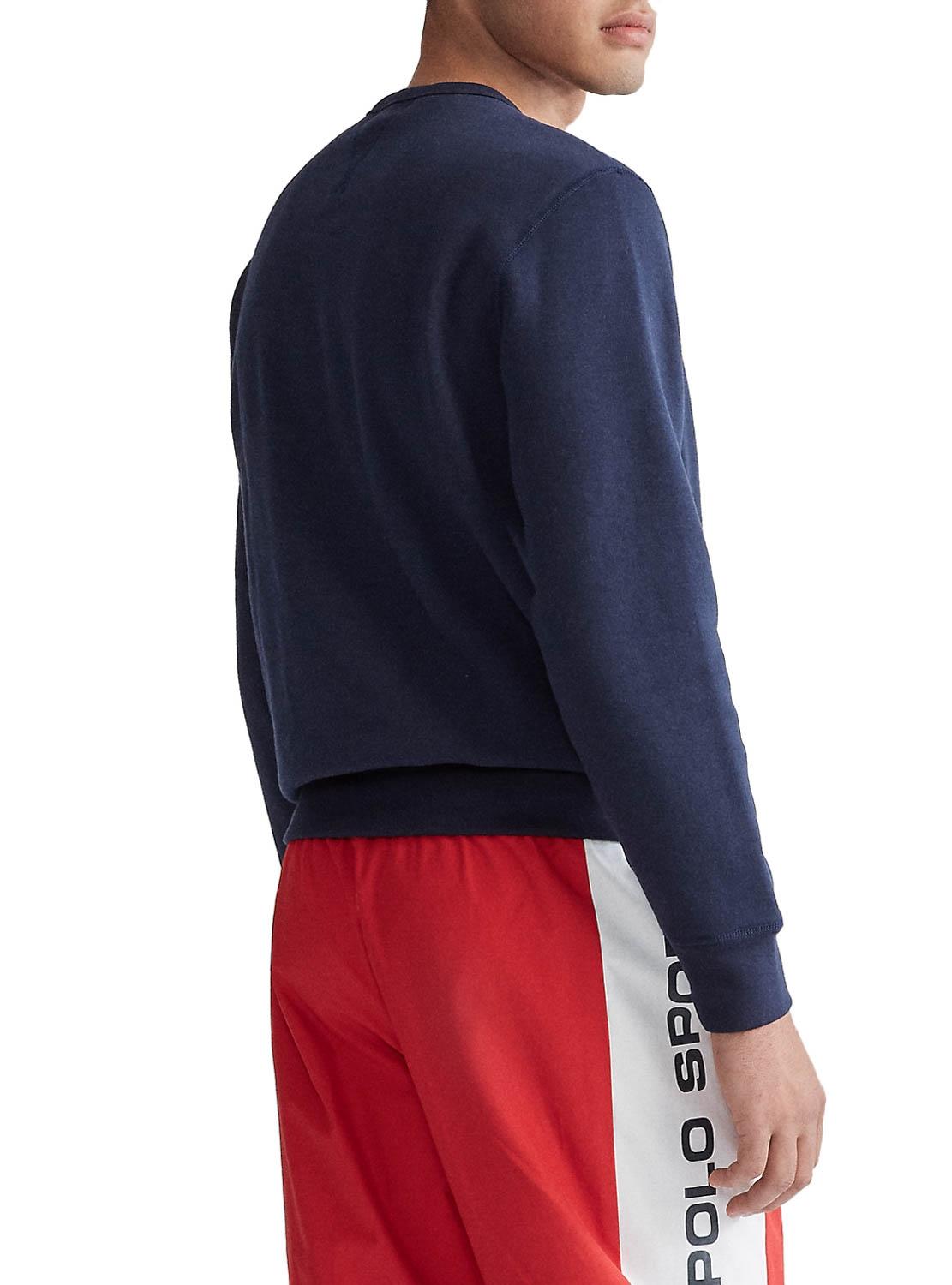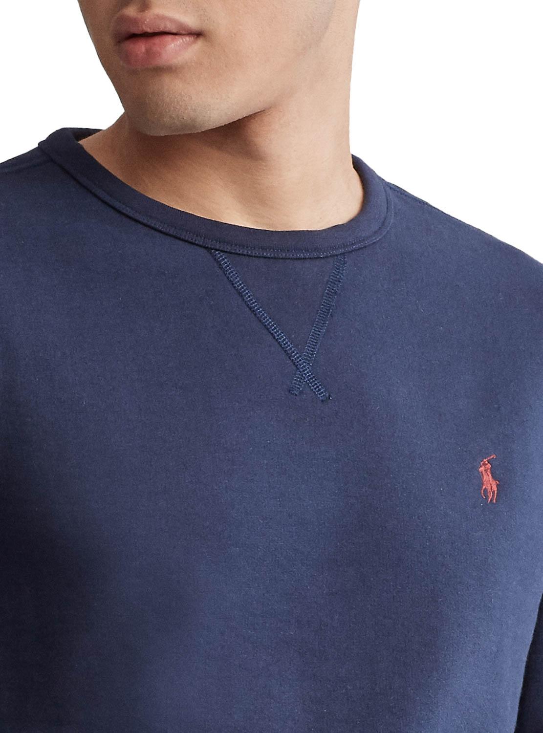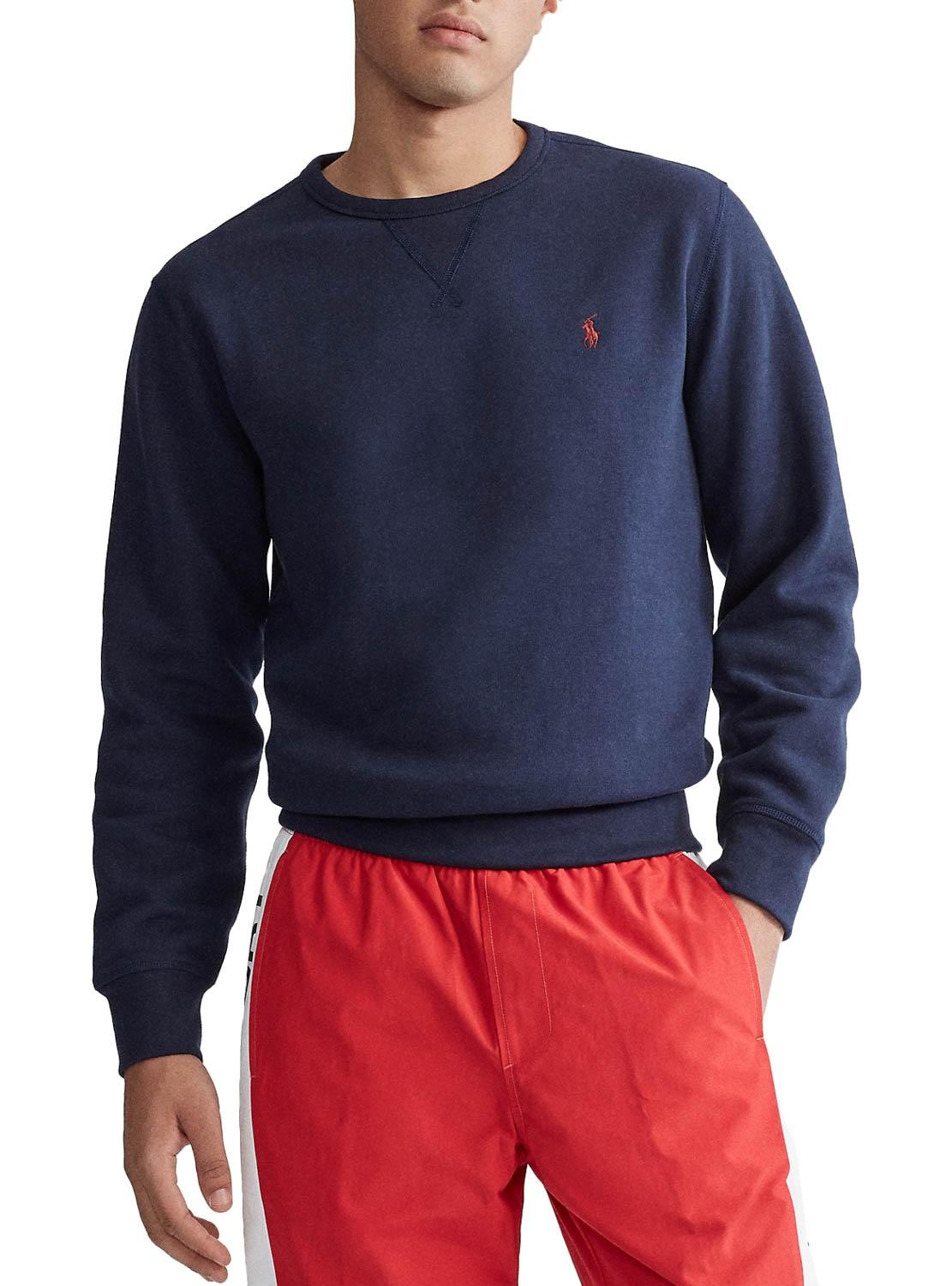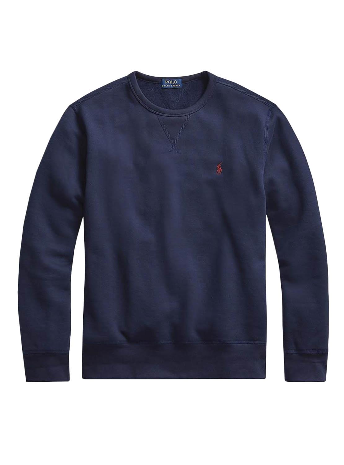 Felpa Polo Ralph Lauren. Modello base. Colore blu marino. Girocollo. Estremità a costine. Cuciture decorative sul collo. Regular fit Logo bordeaux ricamato sul petto.