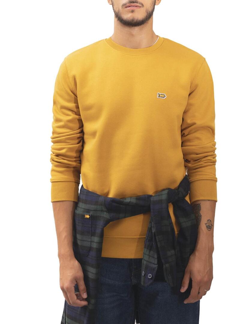 Felpa Klout. Modello basic. Colore ocra. Girocollo. Patch del marchio sul petto. Estremità a coste. Marchio ricamato sul retro. Regular fit Il modello è alto 1,85 e indossa una taglia M. Cotone biologico certificato GOTS.