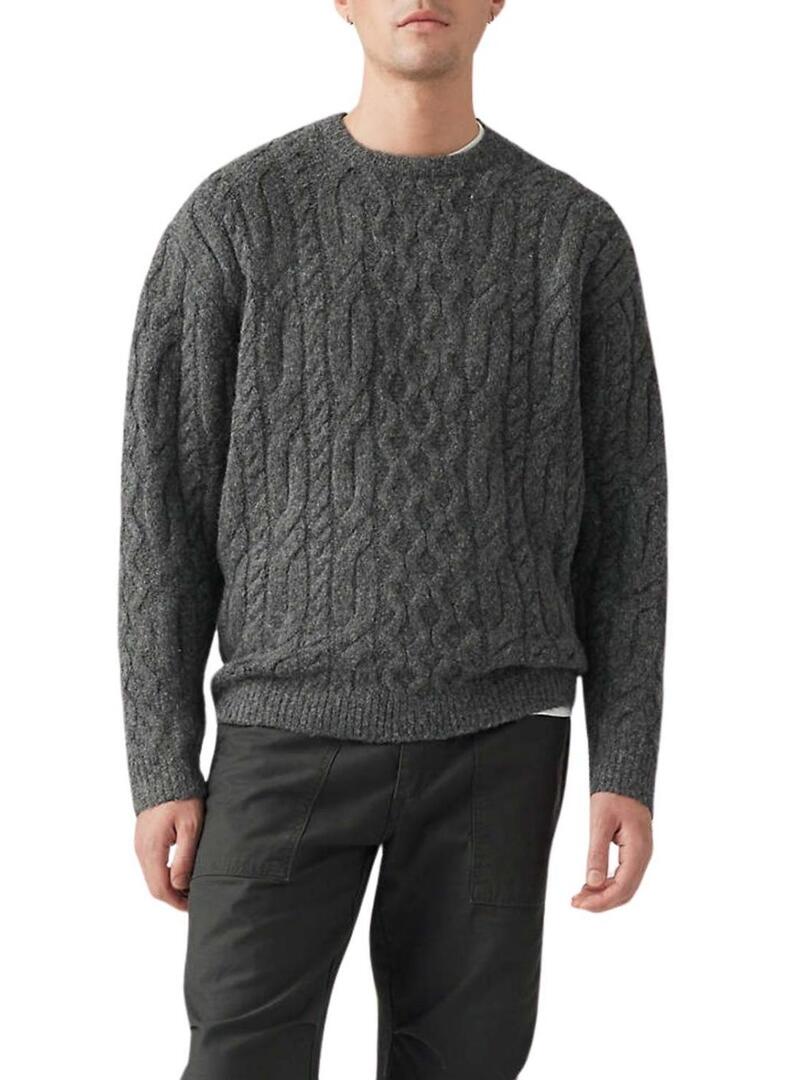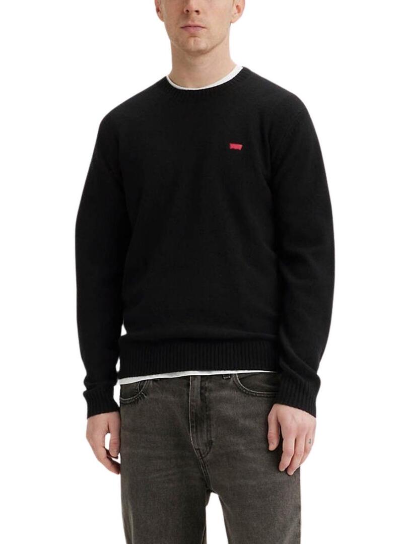 Pullover levi. Modello di battery. Colore verde. Manica lunga. Girocollo. Tessuto in maglia a coste. I modelli indossano la taglia M.