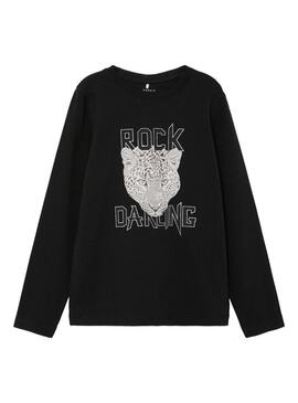 T-Shirt Name It Onethea Nero Rock per Bambina