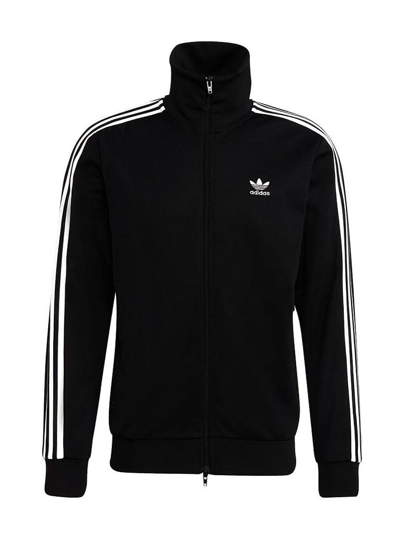 Giacca Adidas. Modello Beckenbauer TT. colore nero. Chiusura con cerniera. Logo ricamato sul petto. Strisce laterali in bianco. Tasche laterali. Termina con gomma a coste.