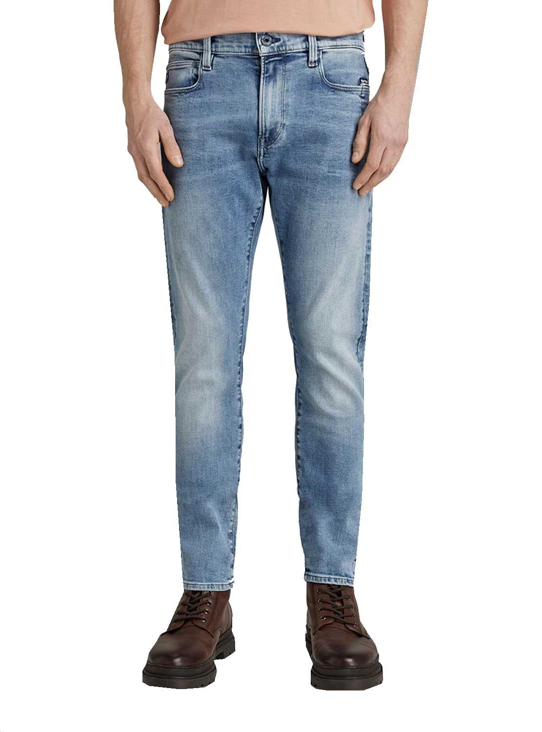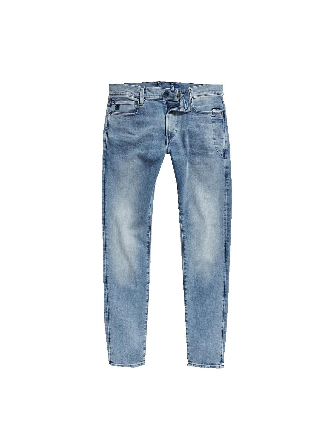 Jeans G-Star. Lancet modello Skinny. Colore blu. Cinque tasche. Tessuto denim elasticizzato effetto lavato. Chiusura con bottone e cerniera.