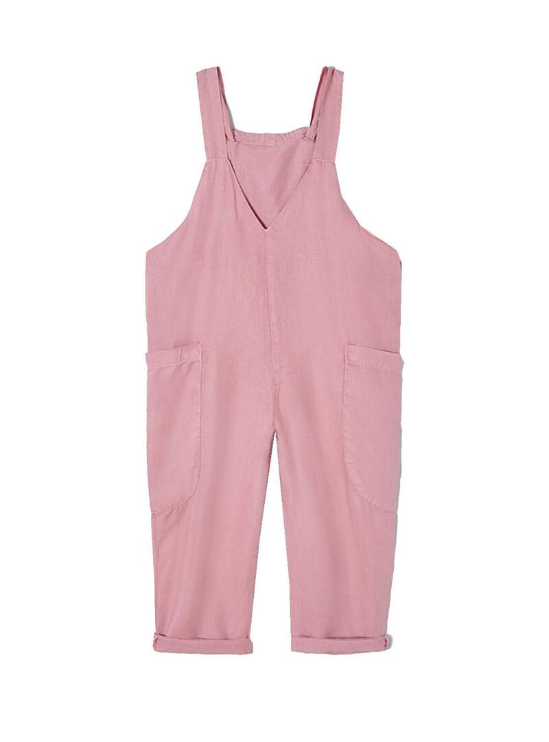 Salopette Mayoral. Colore rosa. Lunghezza. Senza maniche. Bretelle con laccio. Chiusura con bottoni laterali. Tasche laterali aperte. Picco indietro.