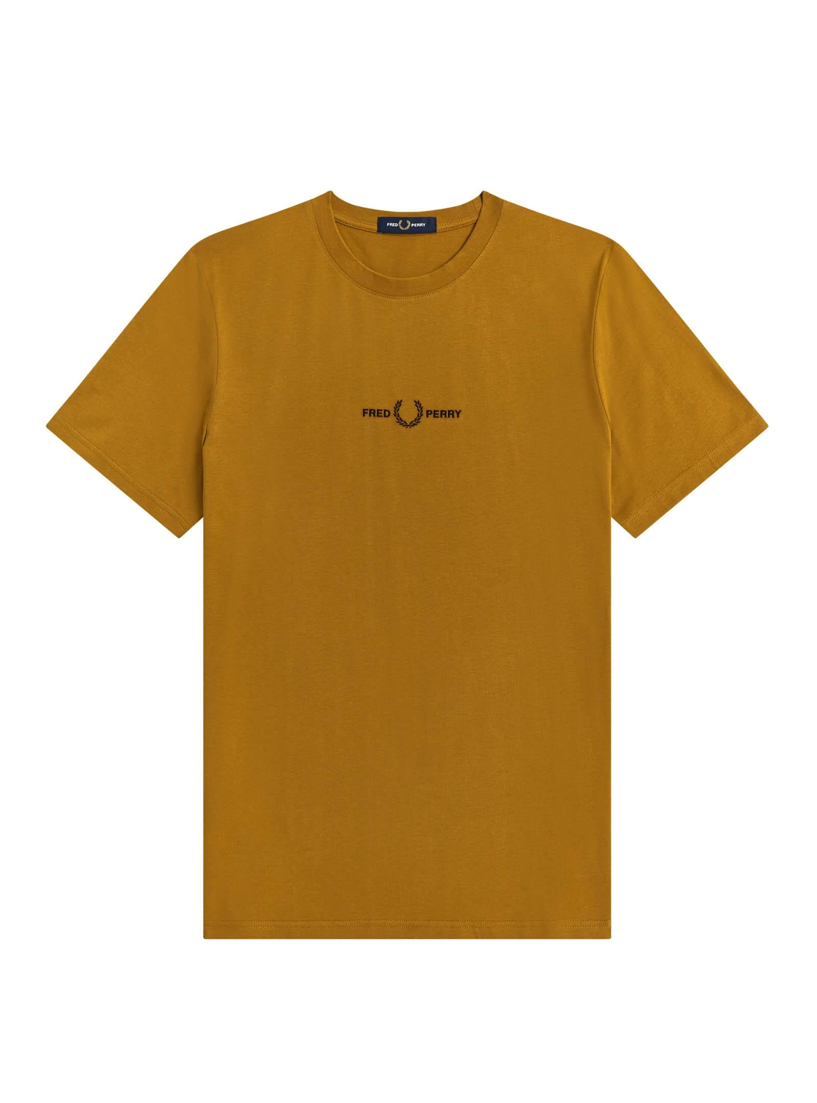 T-Shirt Fred Perry. Colore senape. Manica corta. Girocollo a costine. Logo ricamato sul petto in nero.