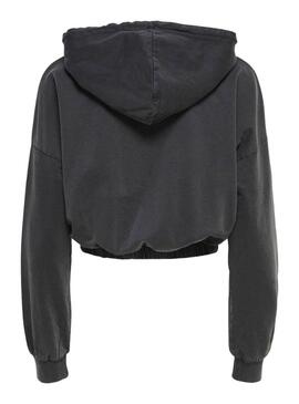 Felpa Only. Colore nero. Felpa con cappa. Crop. Manica lunga. Stampato con un messaggio sul petto.