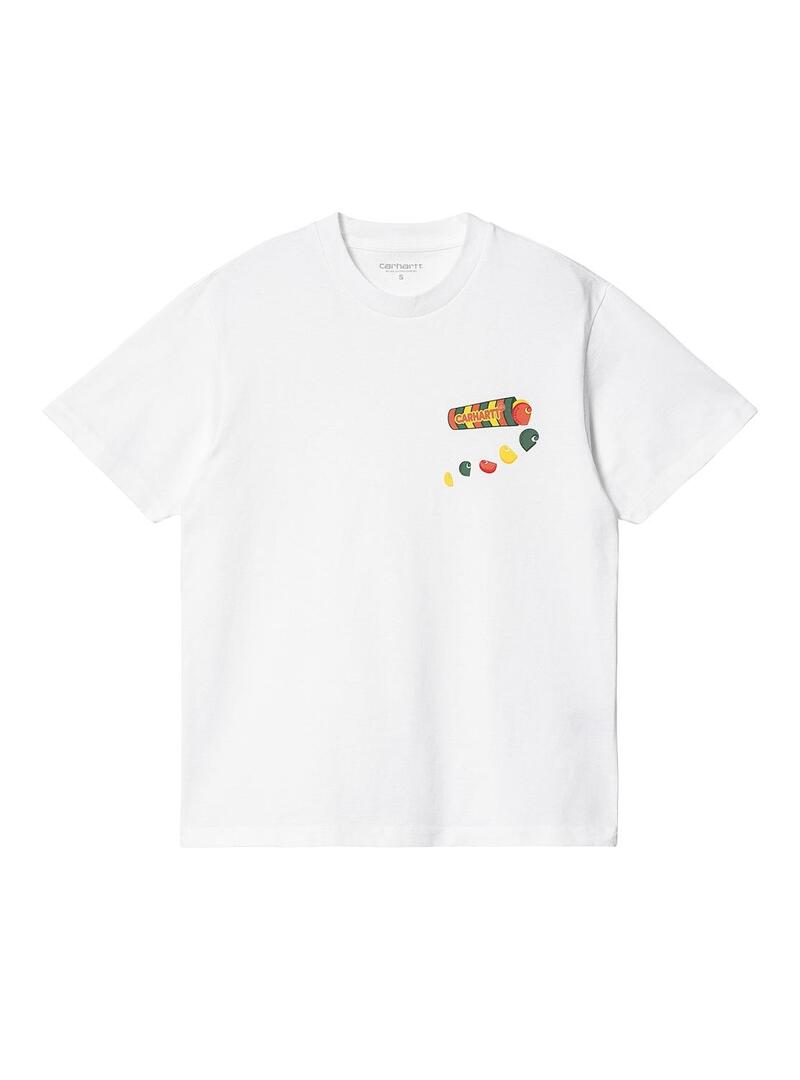 T-Shirt Carhartt. Modello Frolo. Colore bianco. Girocollo. Manica corto. Vestibilità squadrata Illustrazione stampata a colori sul petto.