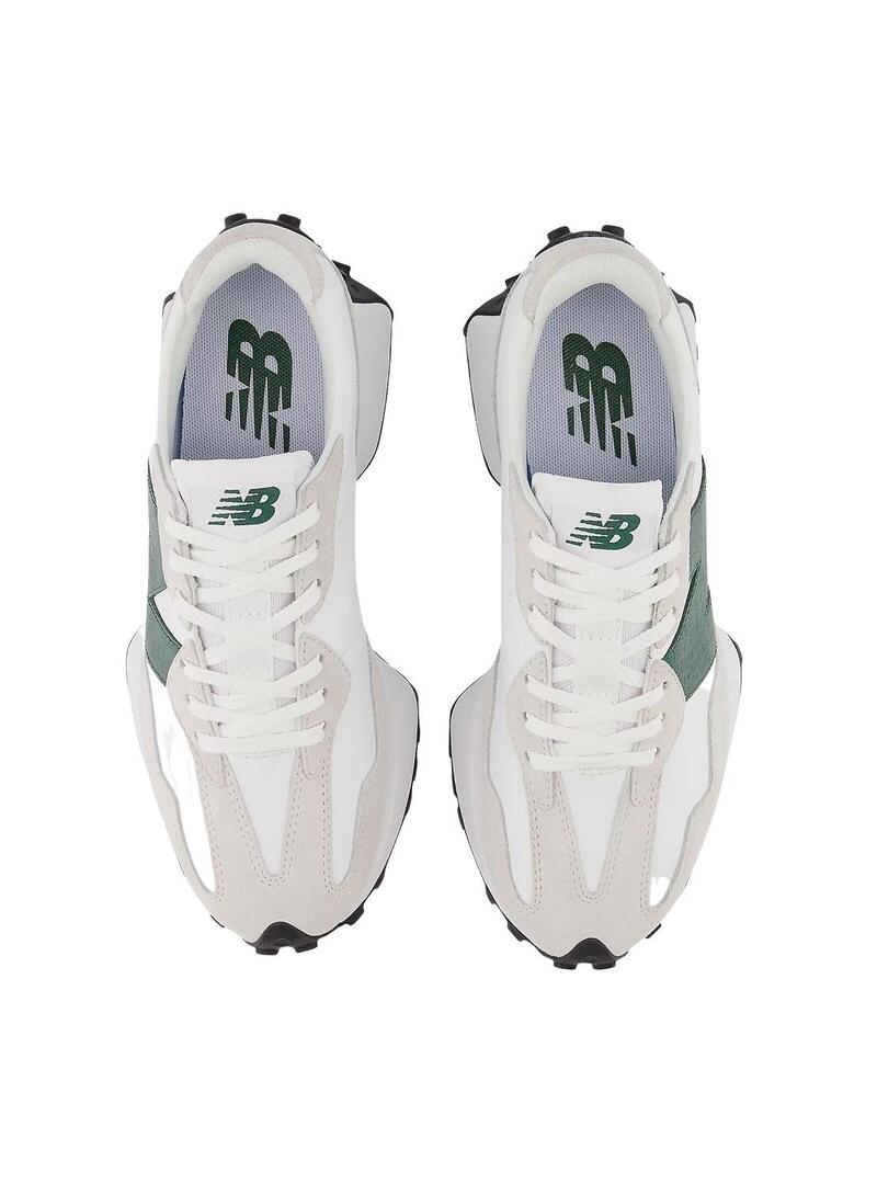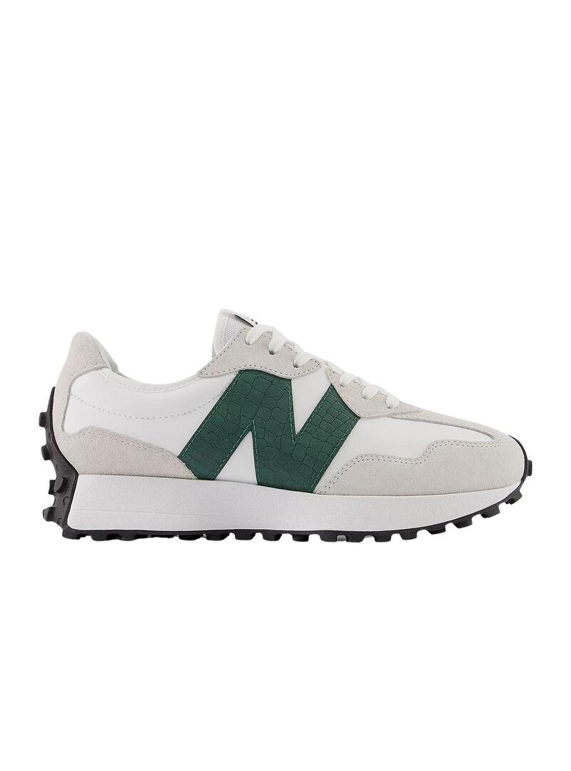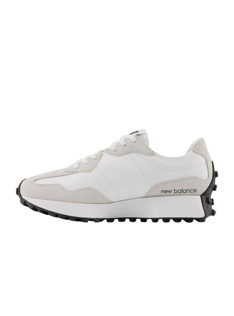 Sneakers New Balance. Modello WS327DC. Colore bianco. Intersuola allargata. Tomaia in tessuto. N colore verde grande. New Balance stampigliato. Suola goffrata. gomma controtacco. Occhielli spaccati.