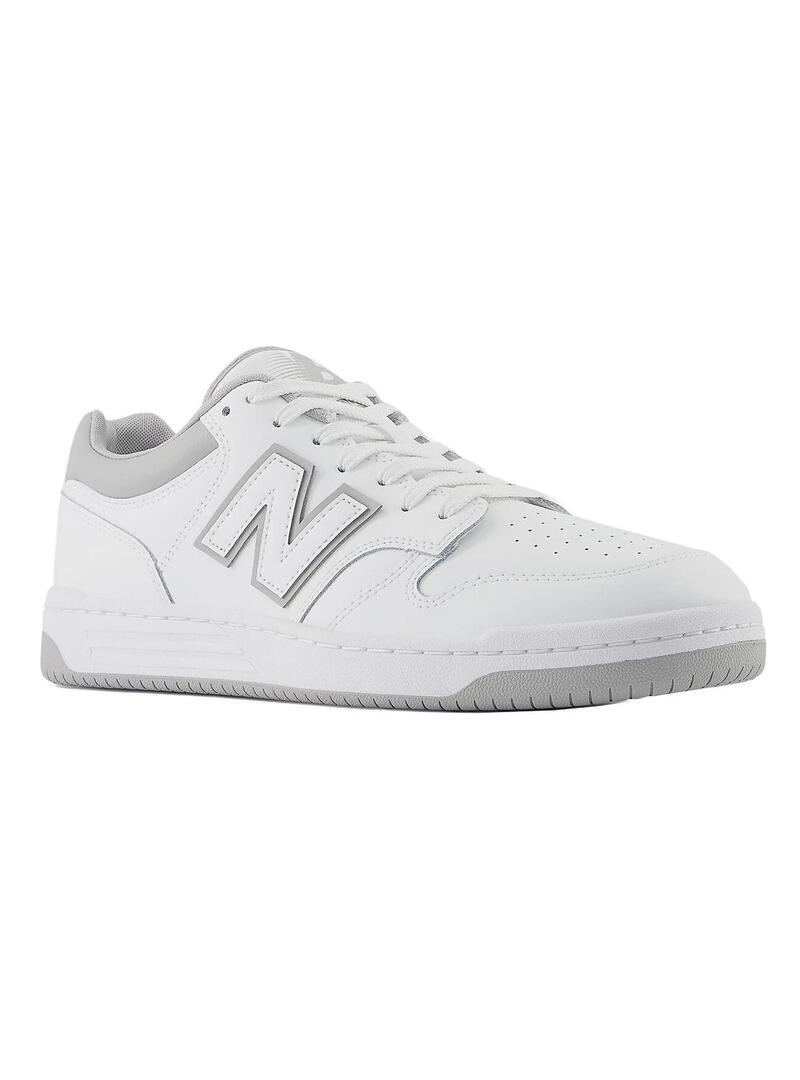 Sneakers New Balance. Modello BB480. Colore bianco. Dettagli in grigio. Parte superiore in morbida pelle di qualità superiore. Tacco robusto. Inserto Ortholite per per maggiore comfort e controllo dell'umidità.