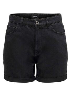 Short Only. Modello vegano. Mamma in forma. Colore nero. Con doppi. Chiusura con bottone e cerniera. per passanti per cintura. Laterali Tasca. High rise. La modella indossa la taglia S.