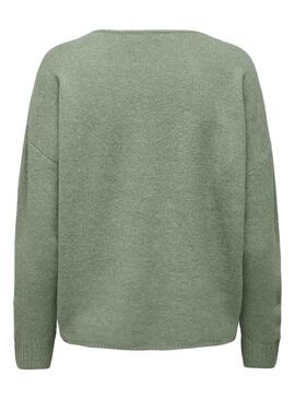 Pullover maglia Only. Modello Rica Life scollo a V. Colore verde. Scollo a V. Manica lungo. Estremità elastiche. Spalle cadute. La modella indossa la taglia S.
