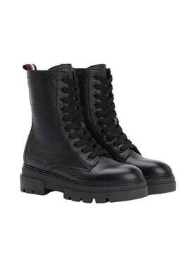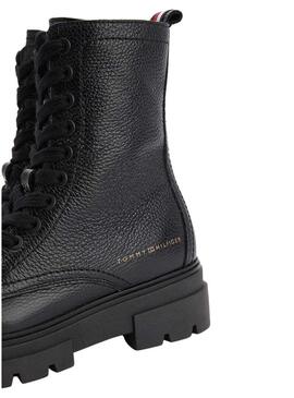 Stivales Tommy Hilfiger. Modello Monochromatic. Colore nero. Tessuto in pelle grana. Chiusura con lacci e cerniera. Interno in cotone biologico. Ancia Media. Asta da 18 cm. Suola 5,5 cm.