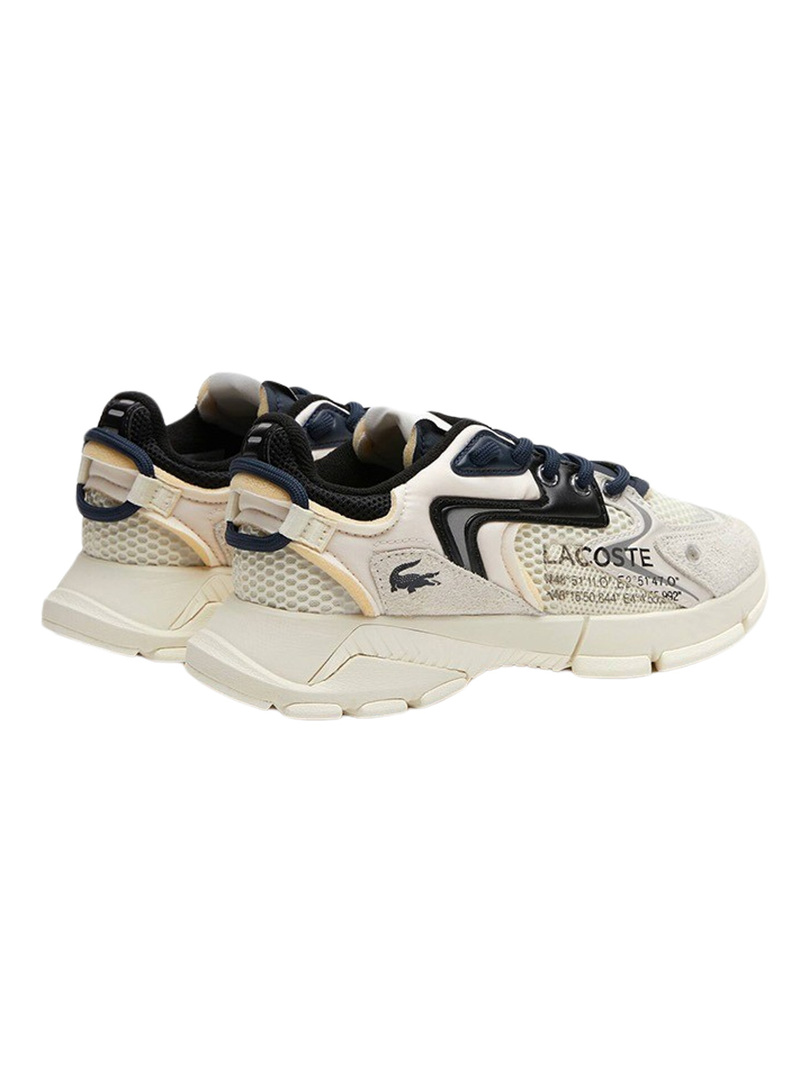 Sneakers Lacoste. Modello L003Neo. Colore bianco e nero. Chiusura con lacci. Pannelli in pelle scamosciata. Tessuto Parte superiore. Suola spessa. Fodera interna in tessuto. Crocodile ricamo nero.