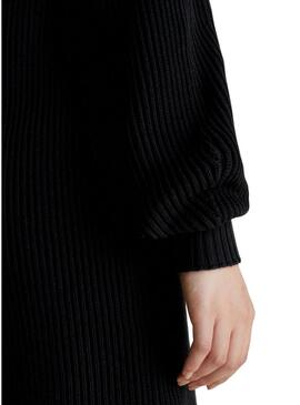 Vestito Calvin Klein Jeans. Tessuto in maglia a coste. Monogramma sul petto. Perdere peso. Colore nero. Manica è lungo con volume. Collare Perkins. JumpsuitGrammo di intarsio Calvin Klein su parte anteriore. La modella indossa la taglia S.
