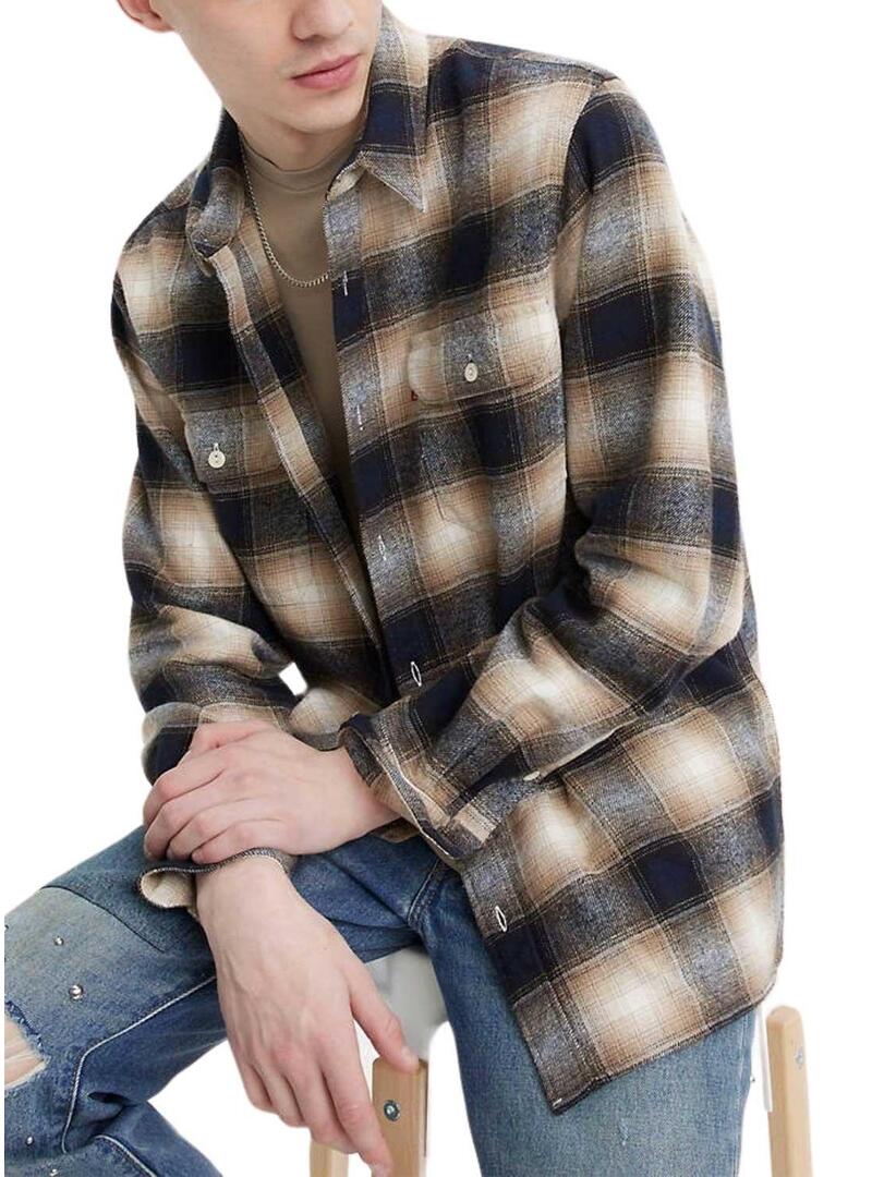 Camicia Levis. I modelli Jack sono Worker. Printed a quadretti beige e blu. Chiusura con bottoni. Manica lungo. Polsini regolabili. Logo ricamato sul petto.
