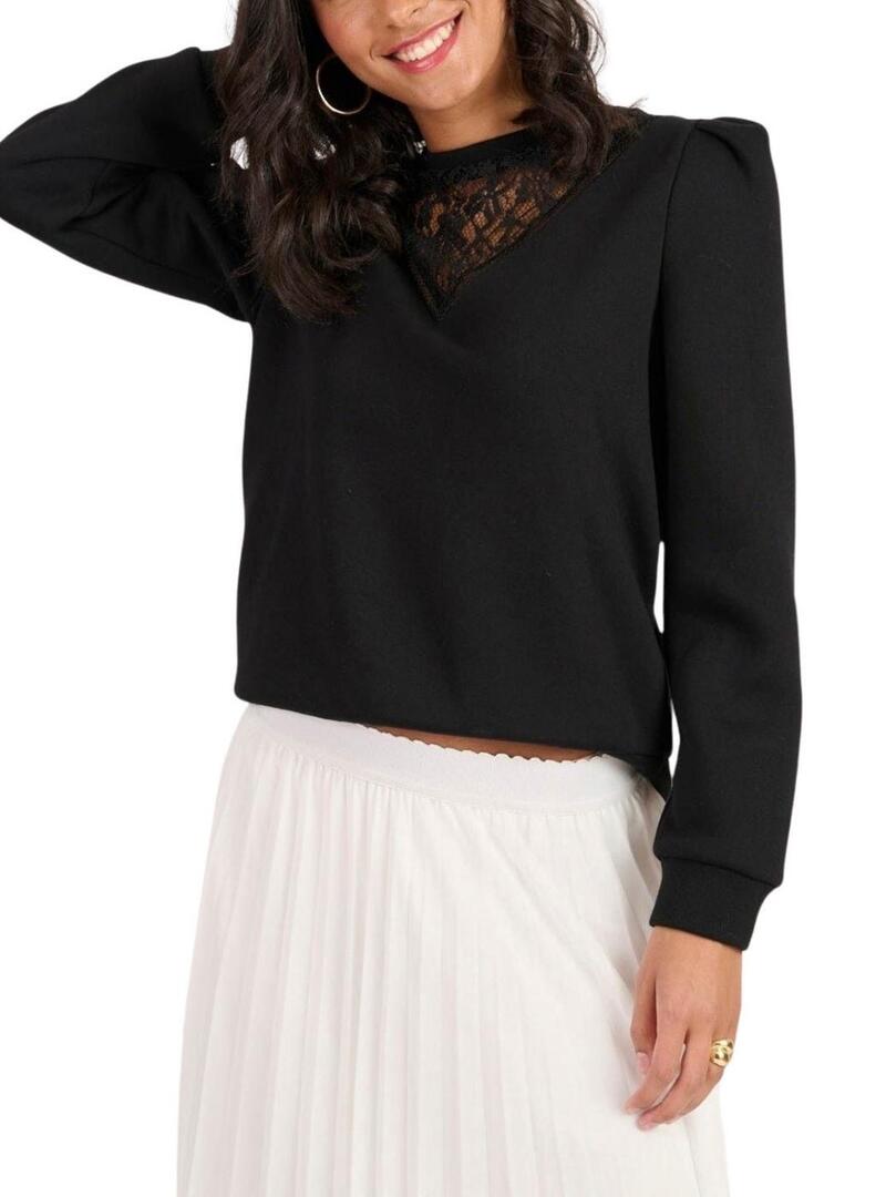 Felpa Naf Naf. Colore marino. Printed anteriore Love All We Need multicolore. Manica lungo. Colletto e polsini con dettaglio in pizzo. Orlo elastico con tessuto a costine.