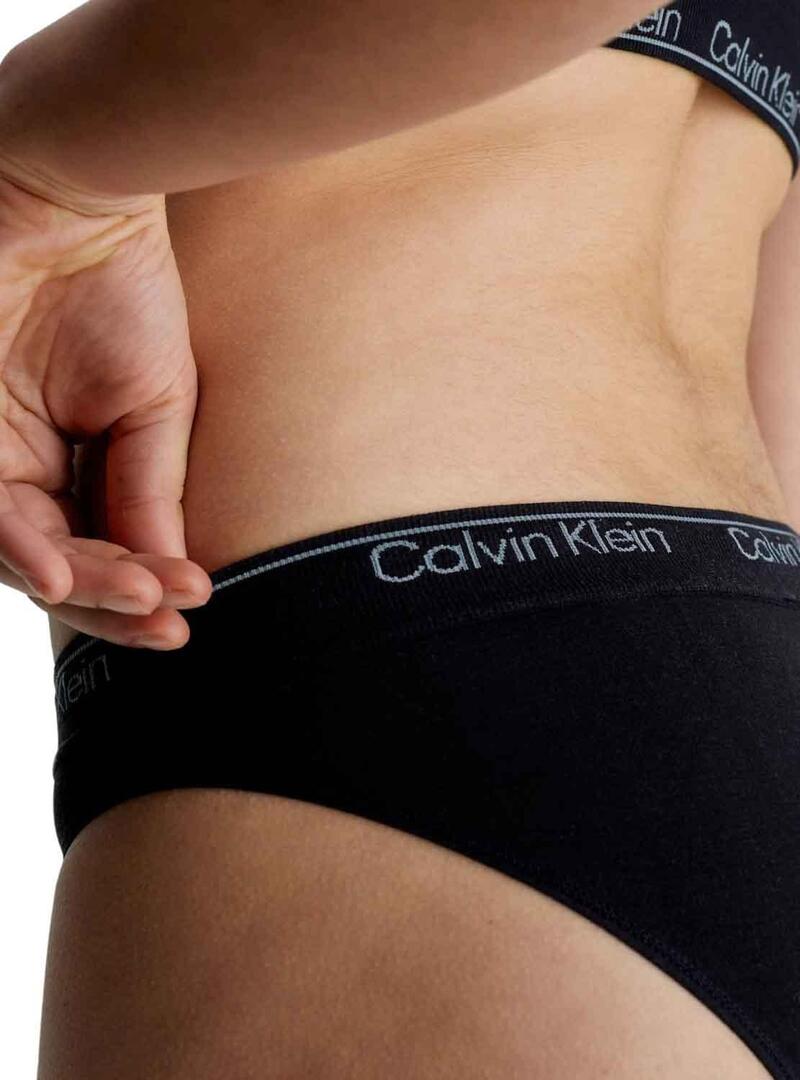 Mutandine di Calvin Klein. Modello bikini. Colore nero. Tessuto elastico. Cintura elastica con lettere a contrasto.
