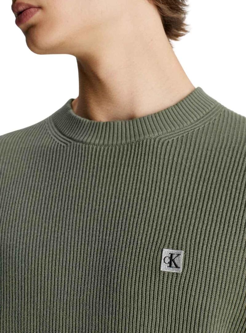 Pullover Calvin Klein Jeans. Modello Basic. Colore verde. Girocollo. Manica lungo. Regular fit Logo ricamato sul petto. Tessuto a costine.