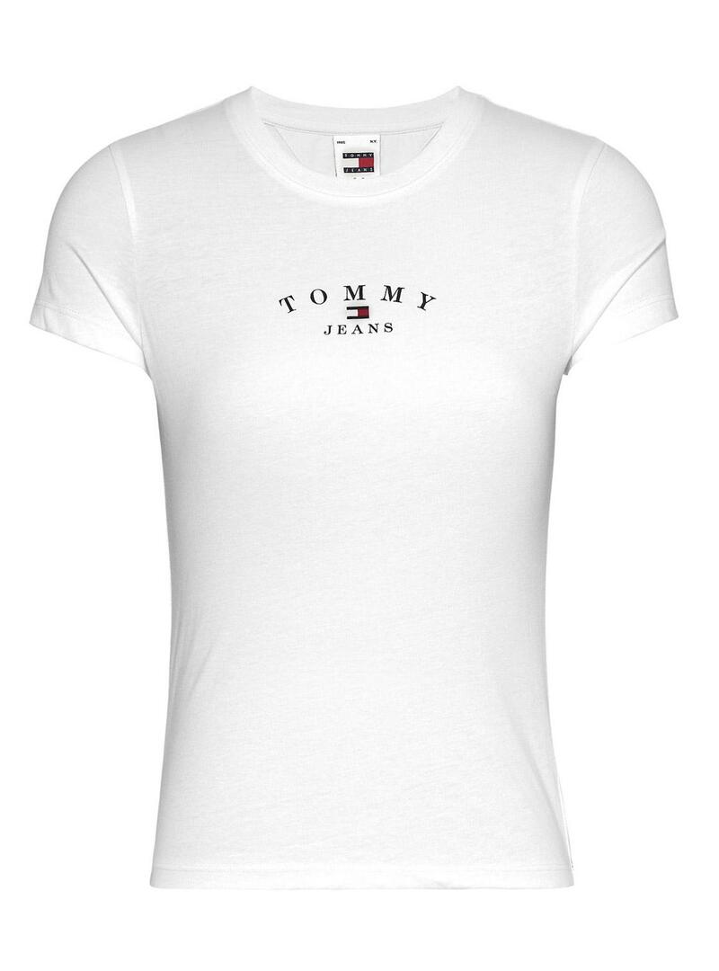Maglietta Tommy Jeans. Vestibilità slim. Colore bianco. Modello Essential Logo. Collo rotondo. Logo stampato sul petto. Collo rotondo elasticizzato. Aderente al corpo. Manica corta.
