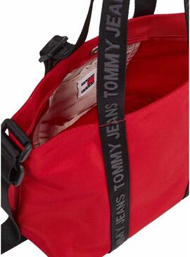 Borsa Tommy Jeans. Colore rosso. Chiusura magnetica. Due manici superiori. Tracolla lunga regolabile e rimovibile. Compartimento principale. Scritta Tommy Jeans sui manici superiori. Patch Tommy nella parte anteriore. Misure: 24 x 15 x 21 cm.