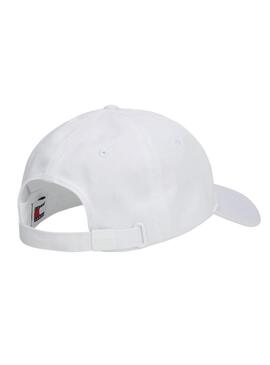 Cappello Tommy Jeans. Colore bianco. Realizzato in cotone organico. Logo allungato ricamato sulla parte anteriore. Cuciture testurizzate sulla visiera. Fibbia regolabile in metallo sulla parte posteriore. Bottone sulla parte superiore. Circonferenza di 58 cm.