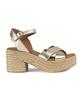 Sandali Popa. Modello Clifton. Colore marrone. Chiusura con fibbia alla caviglia. Altezza di 8cm. Piattaforma anteriore di 3,5cm. Soletta in pelle vegana.