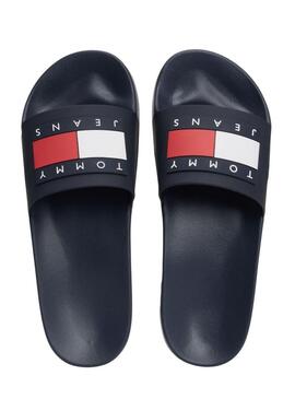 Sandali Tommy Jeans. Modello Pool Slide. Colore blu navy. Logo sulla parte superiore. Esterno in misto gomma termoplastica. Soletta anatomica. Patch con logo Tommy. Dettagli distintivi.