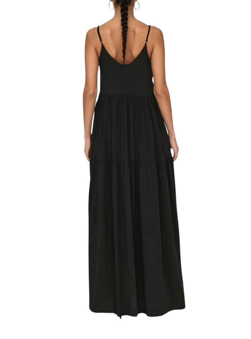 Vestito Only. Modello Sandie. Colore nero. Collo a U. Senza maniche. Spalline con dettaglio metallico. Vestibilità comoda. Lunghezza maxi.