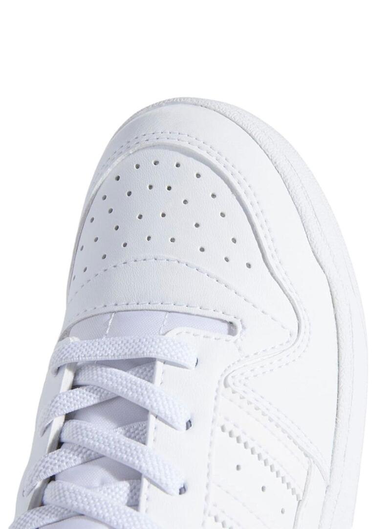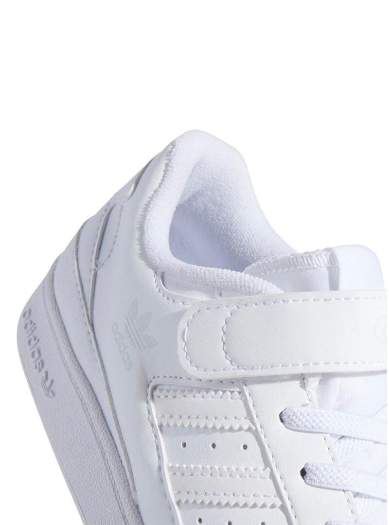 Scarpe Adidas. Modello Forum Low. Colore bianco. Chiusura con lacci e striscia in velcro regolabile. Parte superiore sintetica. Suola in gomma.
