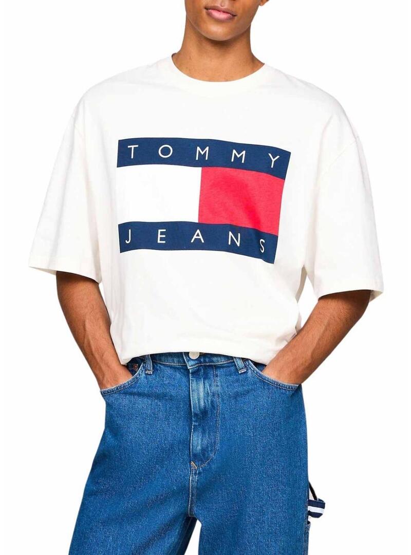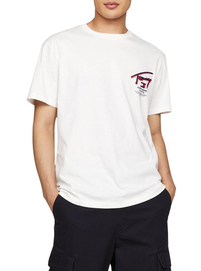 T-shirt Tommy Jeans Novelty bianco con stampa sul retro per uomo