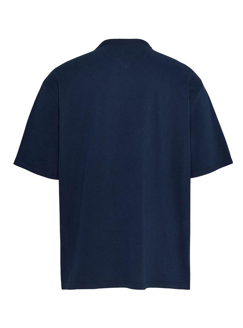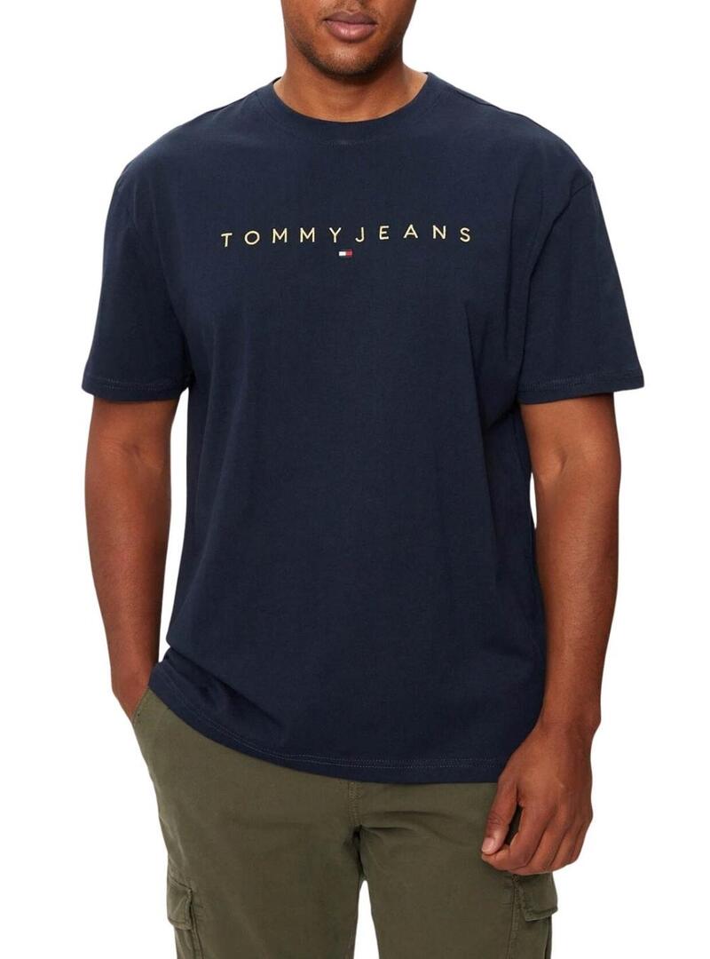 Maglietta Tommy Jeans. Collo rotondo. Manica corta. Taglio regolare. Colore nero. Bandiera con il logo di Tommy Jeans in carattere serif sul petto e sulla schiena. Logo del marchio in fondo. Formato regolare. Il modello indossa la taglia M.