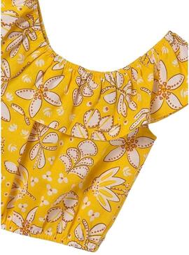 Top Mayoral. Colore giallo. Colletto a balze. Vita elasticizzata. Formato corto. Stampato floreale. Senza maniche.