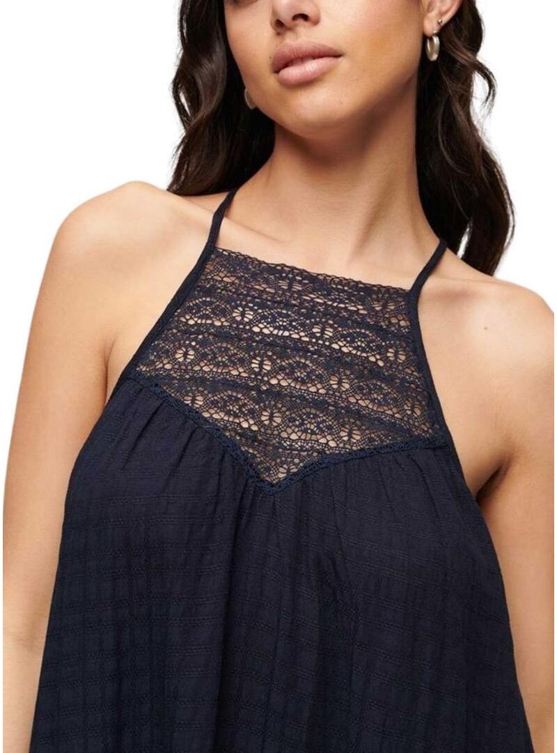 Abito Superdry. Modello Maxi Dress. Colore blu scuro. Senza maniche. Scollo scoperto sulle spalle. Con spalline. Taglio regolare.