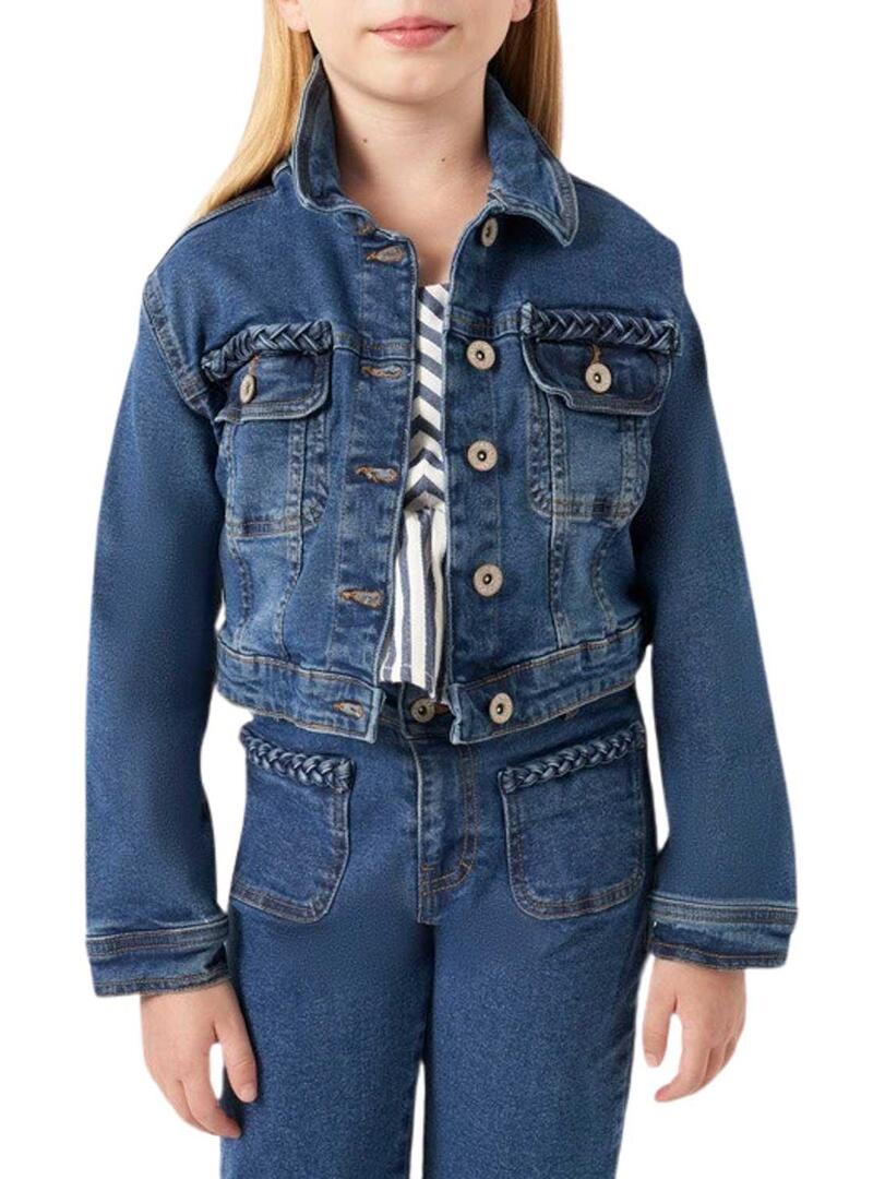 Giubbotto Mayoral. Modello Better. Colore blu scuro. Chiusura a bottoni. 2 tasche. Lunghezza corta.