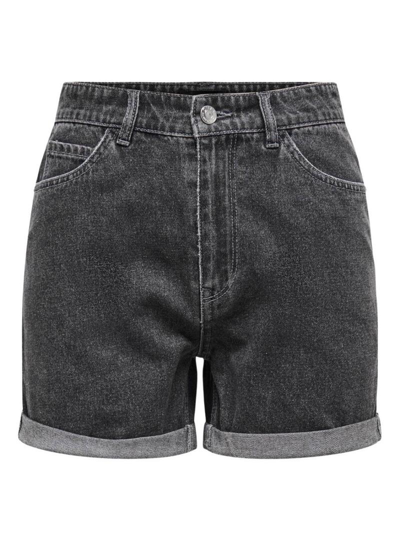 Shorts Only. Modello Vega. Mom fit. Colore nero. Effetto consumato. Vita alta. Cinque tasche. Fondo con risvolto. Etichetta posteriore del marchio in vita.