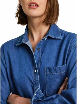 Camicia Pepe Jeans. Modello Boyfriend. Colore blu. Chiusura con bottoni. Tessuto denim. Chiusura con bottoni a pressione. Tasca sul petto.