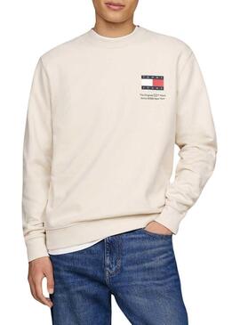 Felpa Tommy Jeans Flag Crew beige per uomo