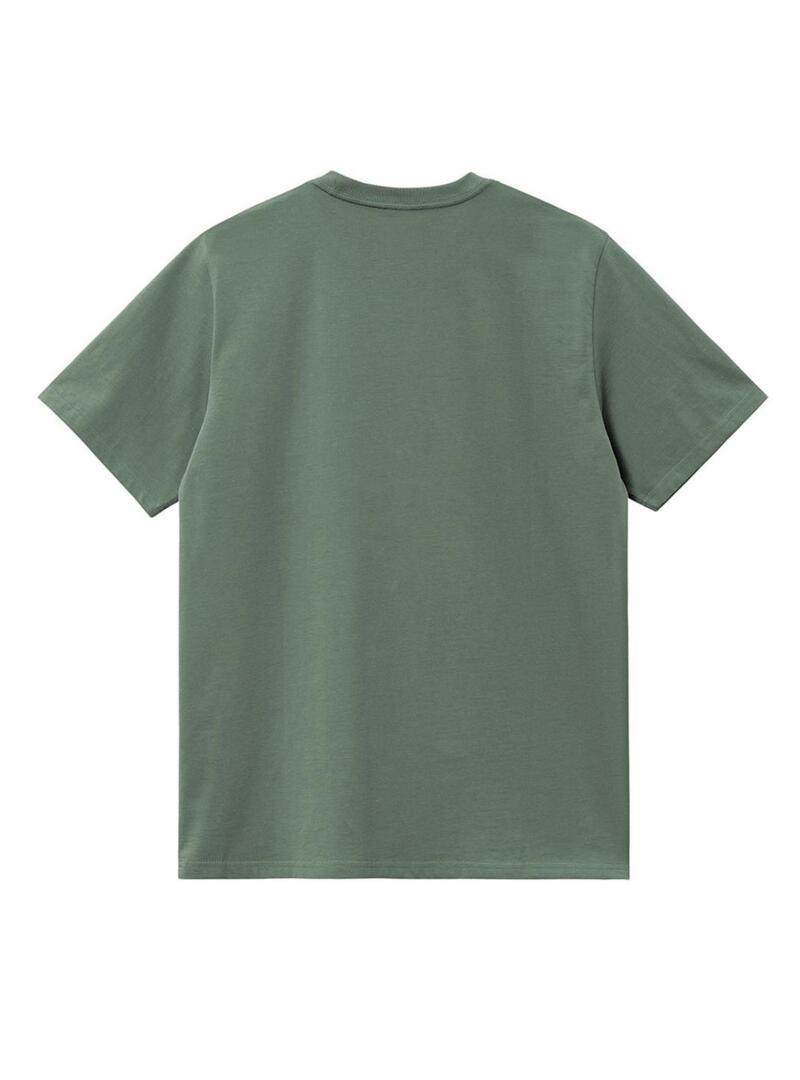 Maglietta Carhartt. Modello Pocket. Colore verde. Tasca sul petto con etichetta intessuta di Carhartt. Manica corta. Vestibilità regolare.