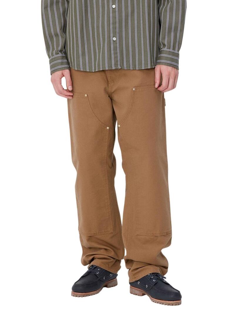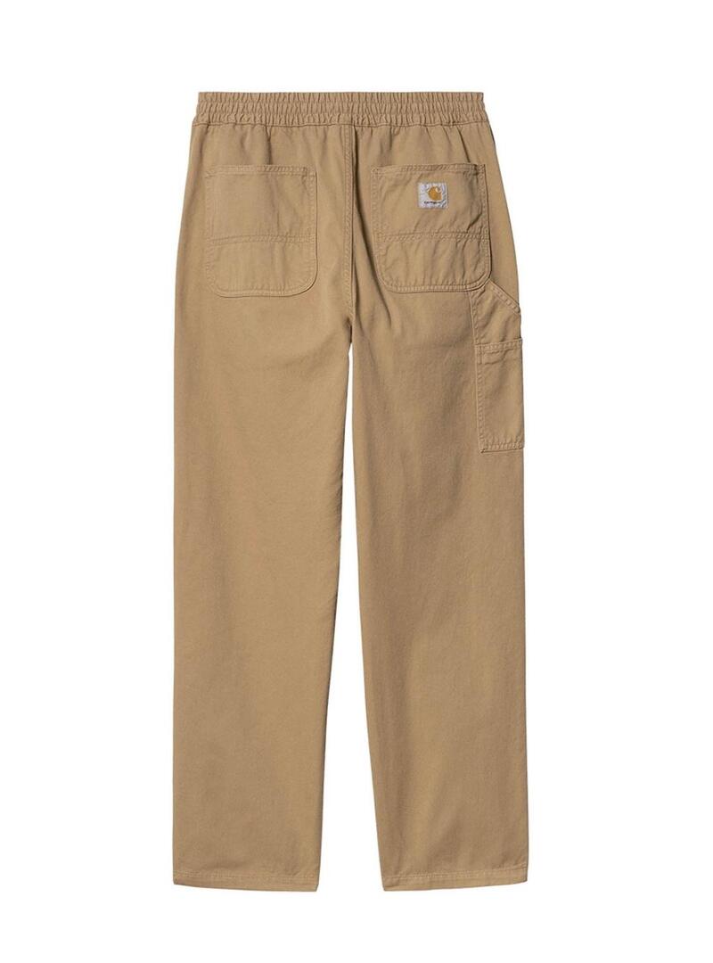 Pantaloni Carhartt. Colore cammello. Modello Flint. Tessuto in cotone organico. Taglio dritto. Cinque tasche. Tasca posteriore con etichetta tessuta del marchio. Vita elastica. Tasche laterali di stile utilitario.