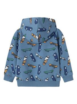 Felpa Name It. Modello Kuno. Colore blu. Stampato con skateboard. Con cappuccio. Orli elasticizzati. Vestibilità regolare.