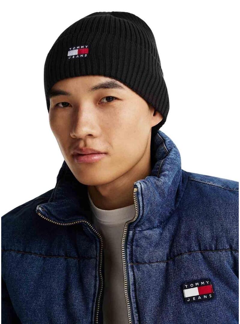 Cappello Tommy Jeans. Tessuto a maglia elastico. Colore nero. Con risvolto. Patch Tommy nella parte anteriore. Misure: 22 x 21 cm.