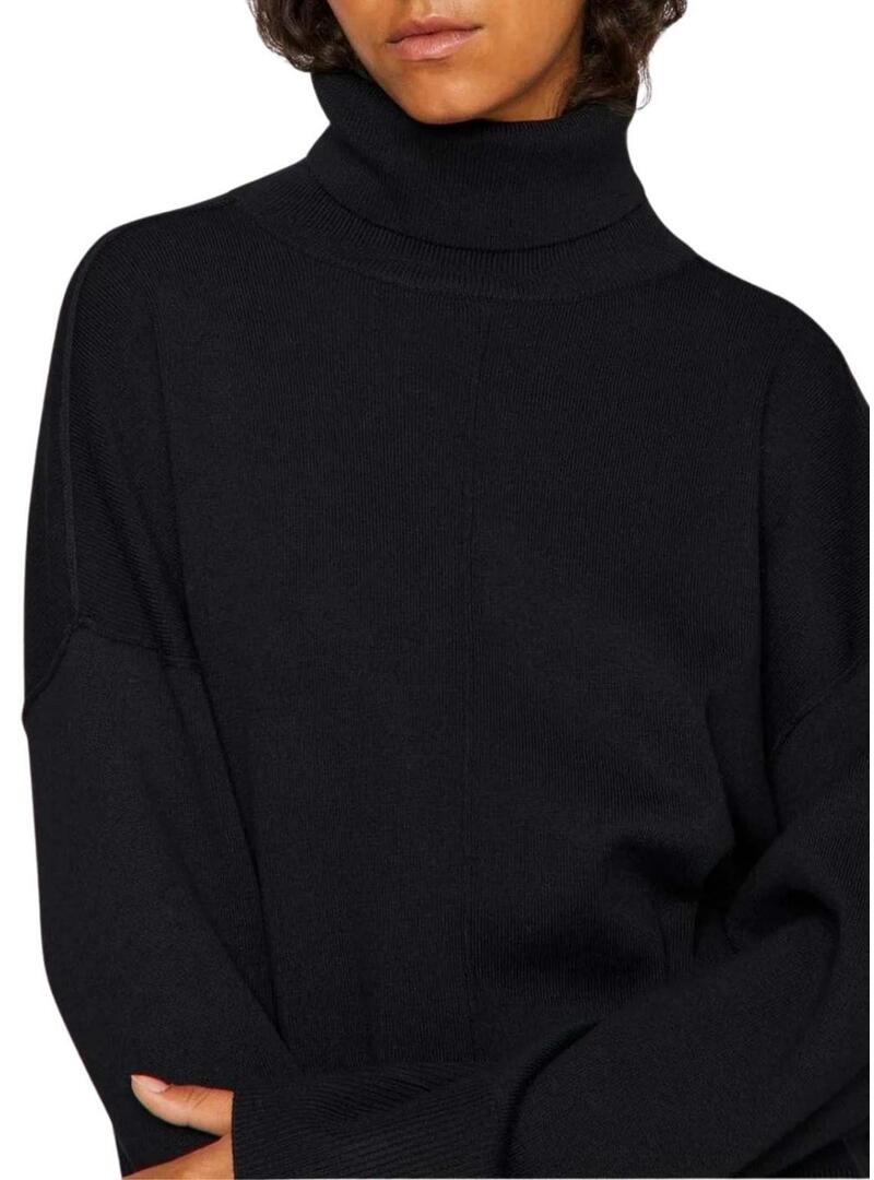 Maglia Vila. Modello Viostria. Colore nero. Collo alto con risvolto. Manica lunga. Orli a coste. Vestibilità oversize. Aperture laterali. Schiena leggermente più lunga rispetto al davanti.