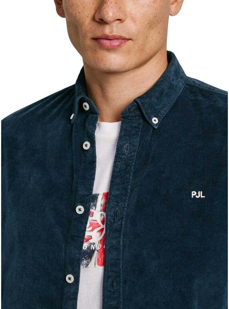 Camicia Pepe Jeans. Modello Miller. Colore blu scuro. Manica lunga. Chiusura a bottoni. Logo del marchio ricamato sul petto. Polsini abbottonati. Vestibilità regolare.