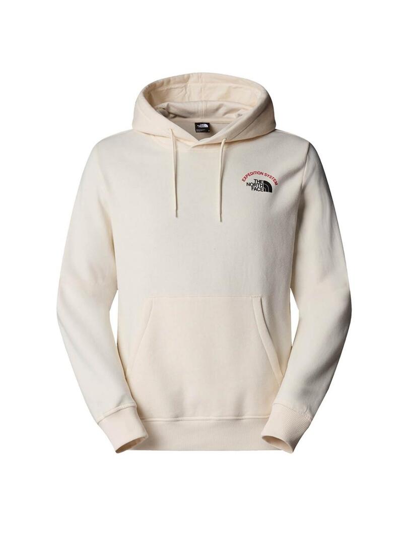 Felpa The North Face. Colore beige. Con cappuccio. Stampa originale grafica di spedizione sulla schiena. Logo sul petto. Tasca marsupio. Manica lunga. Taglio regolare. Il modello indossa la taglia M.