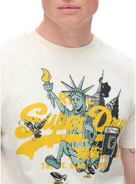 Maglietta Superdry. Colore bianco. Colletto rotondo. Manica corta. Taglio regolare. Testo Superdry con texture e stampa sulla parte anteriore. Etichetta del marchio su una manica. Il modello indossa la taglia M.
