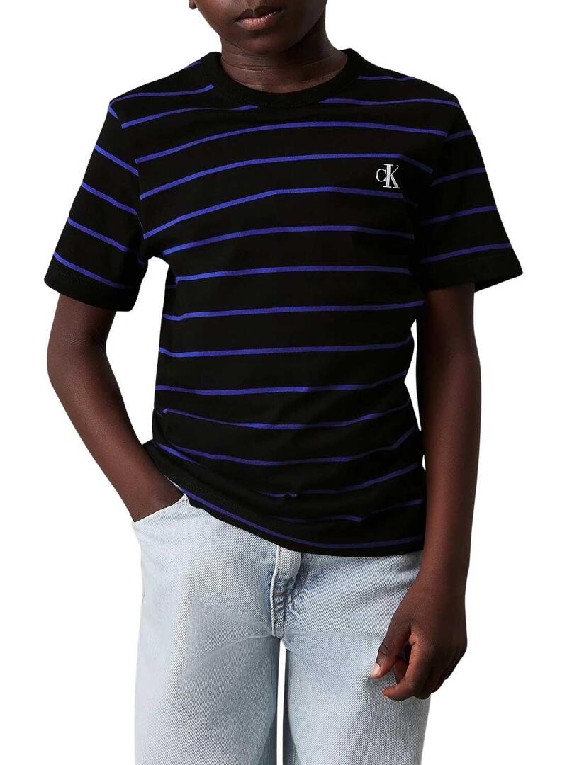 Pacco di 2 magliette Calvin Klein. Una maglietta blu. Una maglietta a righe. Vestibilità regolare. Collo rotondo. Manica corta. Logo monogramma di Calvin Klein stampato sul petto.