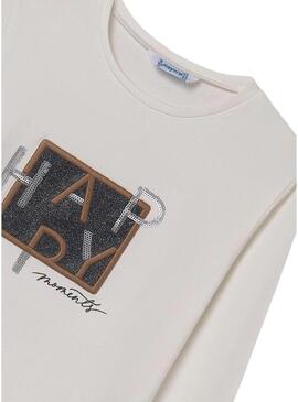 Maglietta Mayoral. Colore bianco. Girocollo. Manica lunga. Taglio regolare. Testo momenti felici. Con paillettes.